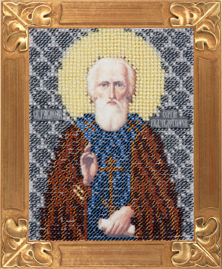 Вышивание иконы «Святой Равноапостольный Сергий Радонежский, чудотворец» производится по атласу. В обычных наборах вышивание бисером икон производится по канве с рисунком или по схеме.