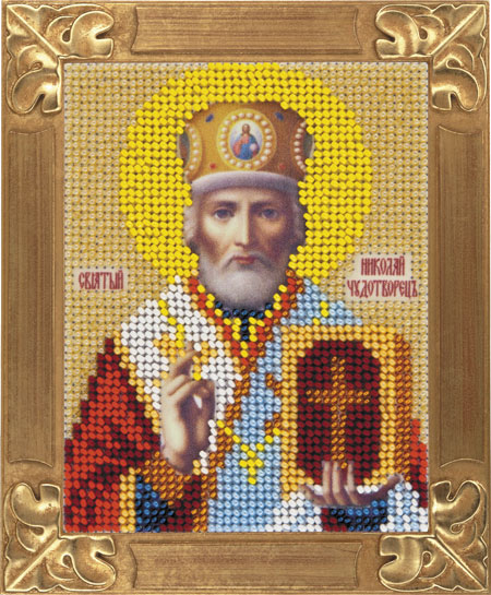 Вышивание иконы «Святитель Николай, архиепископ Мир Ликийских, чудотворец» производится по атласу. В обычных наборах вышивание бисером икон производится по канве с рисунком или по схеме.